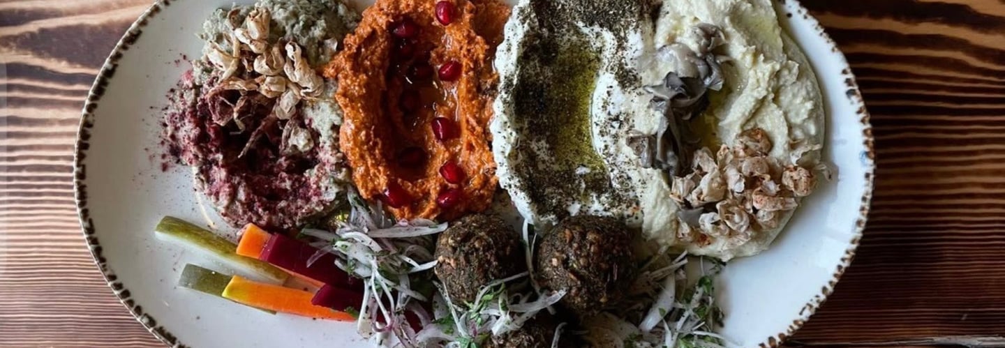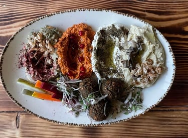 A contemporary Middle Eastern restaurant focusing on interactive dishes, innovative mezze & unique tabletop shawarma experiences, blending traditional flavors with modern presentation for an immersive culinary journey